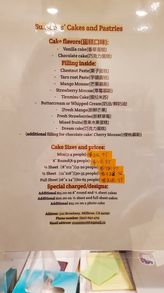 Suzanne's Cake & Pastry Menu